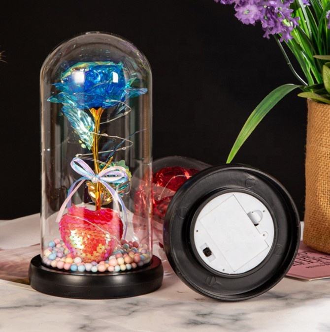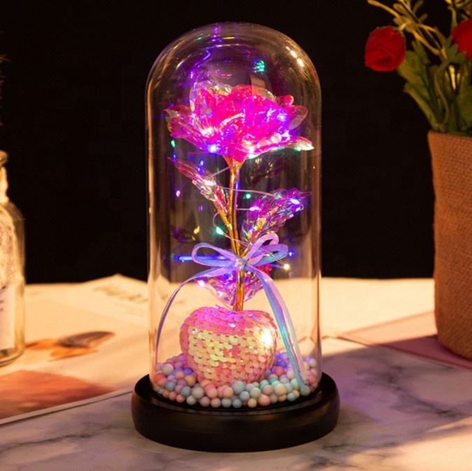 Wholesale Romantic Love Enchanted Rose in Glass Dome with LED Light Anniversary Valentines Day Best Gift for Her