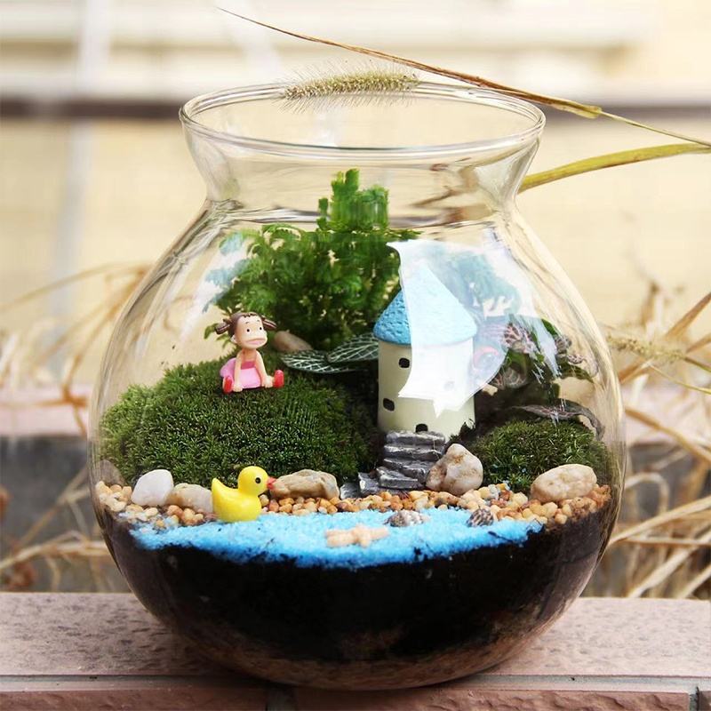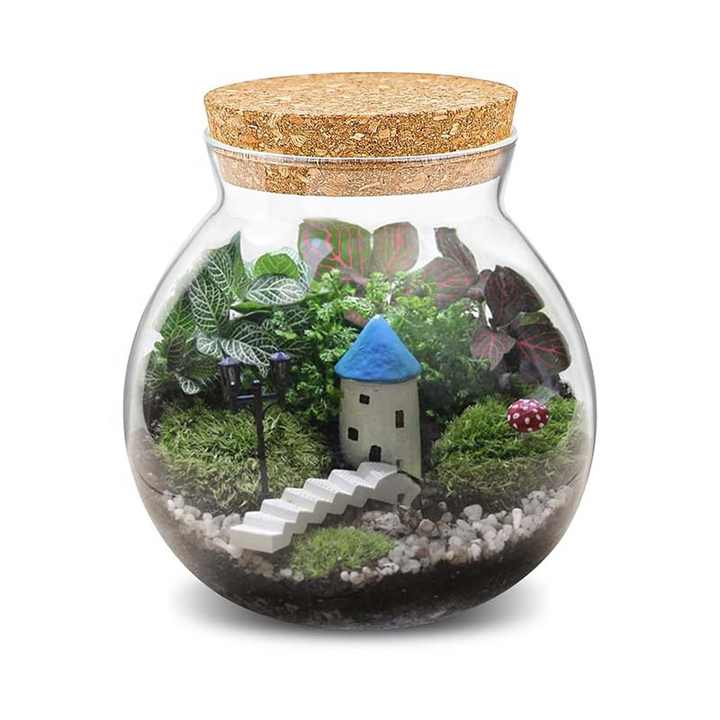 Wholesale Round Glass Jar Fern Moss Succulent Air Plants Terrarium Clear Moss Vases Micro Landscape Glass Vase with Cork Lid