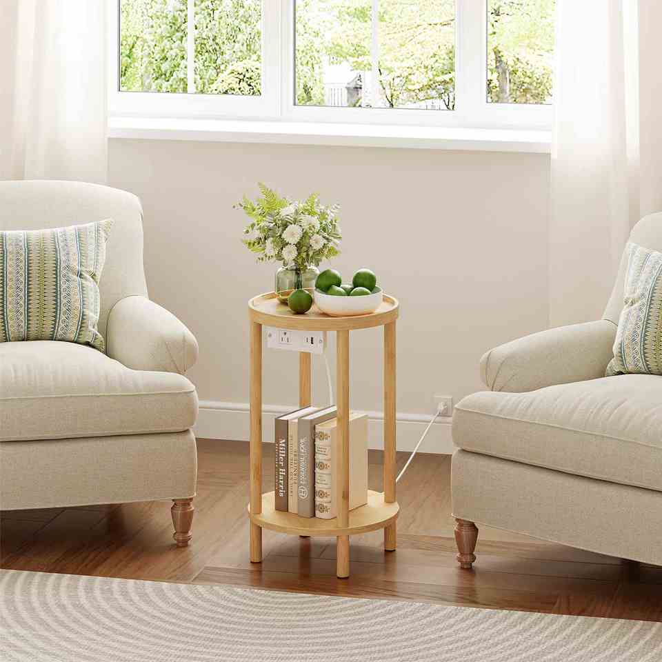 Tavolino Rotondo in Legno all'Ingrosso, Tavolino d'Appoggio Circolare in Legno, Tavolino da Caffè Rotondo in Legno per Soggiorno