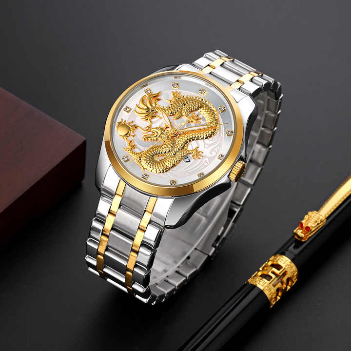 Wholesale SKMEI 9193 Men's Quartz Watch Dragon Emboss Dial Luxury Quartz Brand High Quality Watch