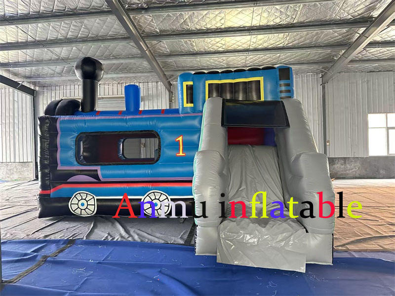 Wholesale Sale of Blue Inflatable Castle, Thomas the Train PVC Inflatable Bouncing Bed with Slide Set