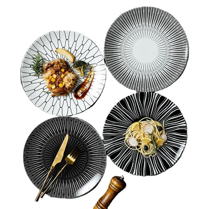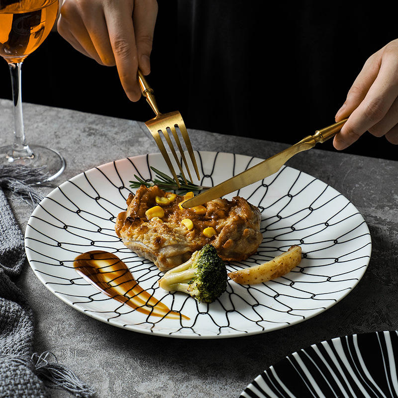 Commercio all'ingrosso scandinavo stoviglie Spaghetti occidentale piatto da Dessert ristorante bianco e nero piatti in ceramica piatti cena in ceramica