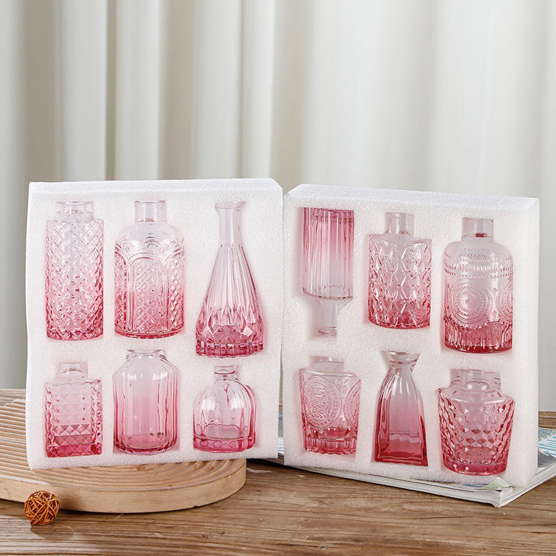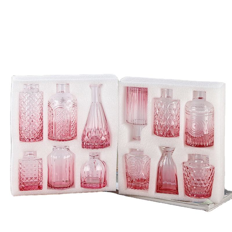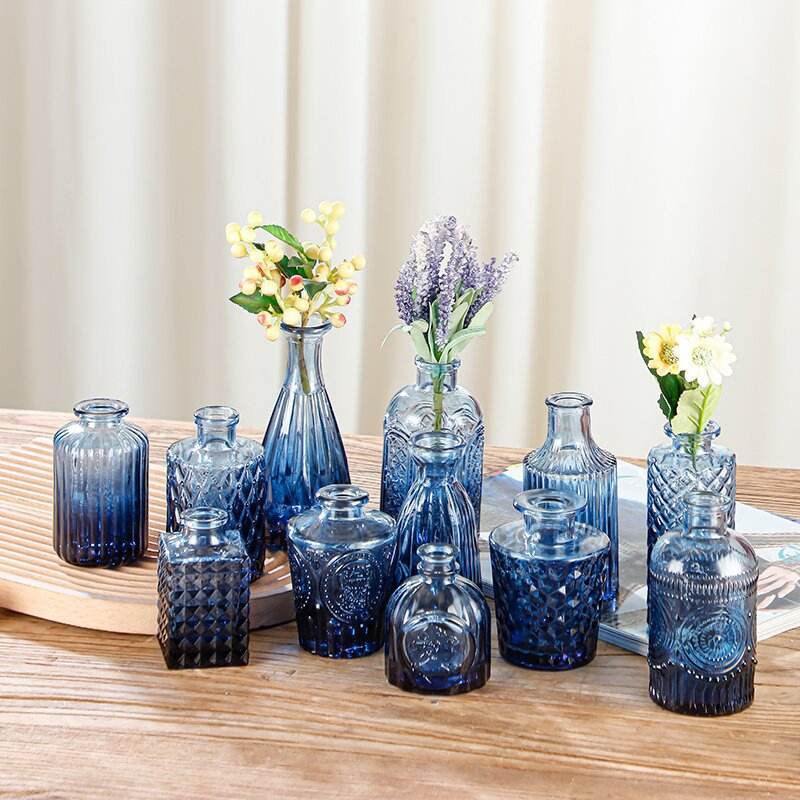 Wholesale Set of 12 Bud Vases Pink Blue Clear Glass Flower Plant Vase for Home Wedding Decorations Vintage Cute Flower Decor