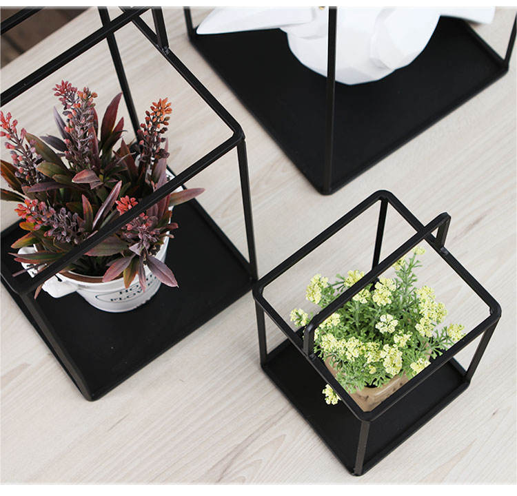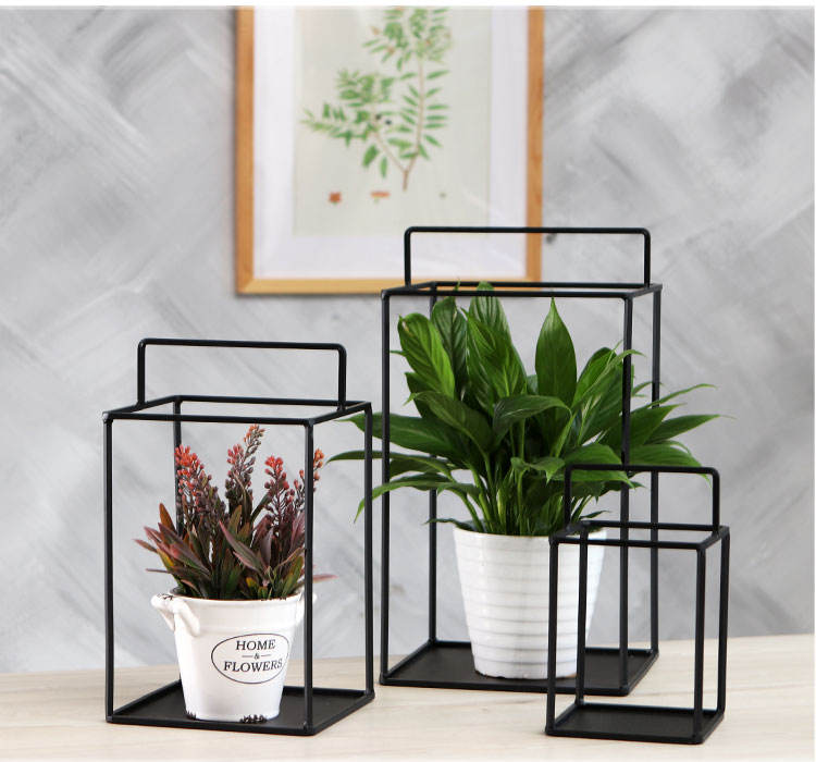 Wholesale Set of 3 Indoor Outdoor Decorative Black Metal Succulent Cactus Flower Planter Pots Rack Stand Holder