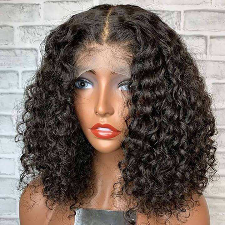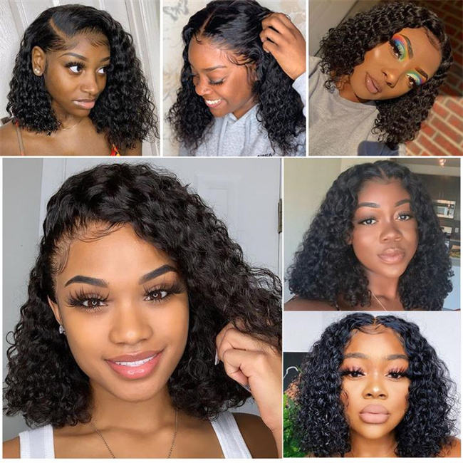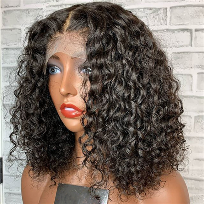 Parrucca per capelli brasiliani in pizzo corto con fiocco frontale in pizzo HD parrucca frontale in pizzo con capelli vergini allineati con onde profonde stile nero da donna