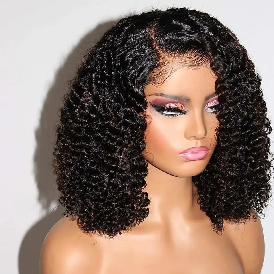 Wholesale Short Bob Wig for Women Transparent for Lace Frontal with Glueless Raw Deep Wave Brazilian Hair Small Cap Size Black