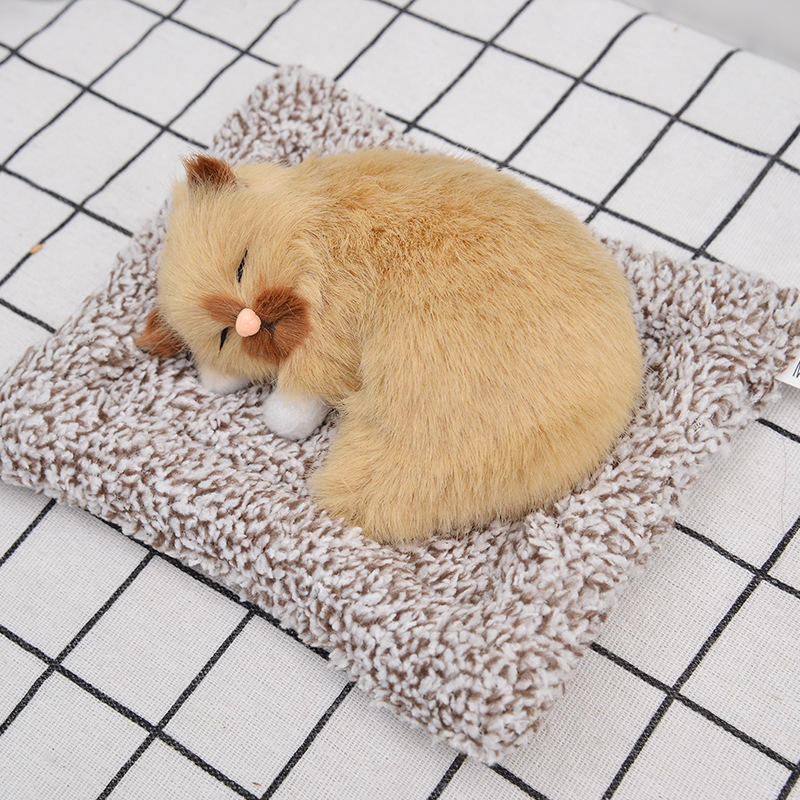Ingrosso simulazione adorabile gatto fa suoni bambola carina che dorme gatti di peluche sul tappetino farcito decorazione peluche bambola di gatto addormentato