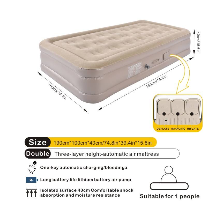 Wholesale Single Air Bed with Built-In Pump Puncture-resistant Inflatable Mattress Inflation Self Inflatable Home air Mattresses