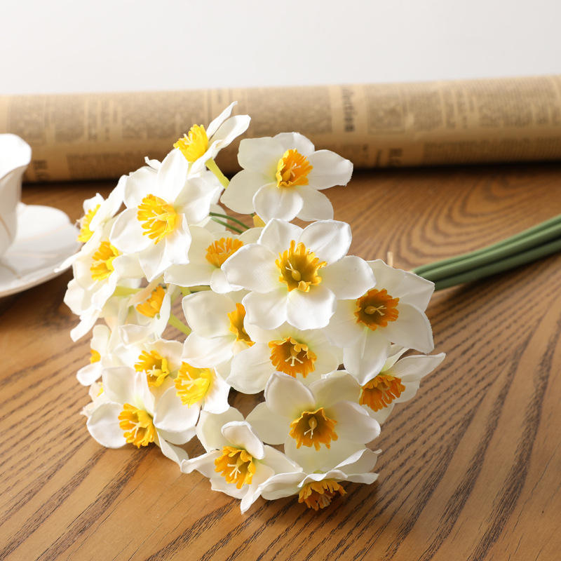 Artificial Daffodil Bouquet Silk Faux Daffodil Flowers For Decoration