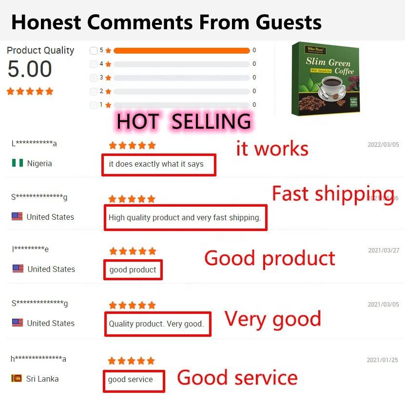 Commercio all'ingrosso sottile caffè verde grasso che brucia il peso del caffè nero sottile etichetta privata winstant energy Ganoderma caffè