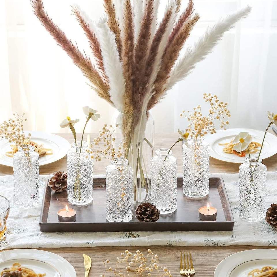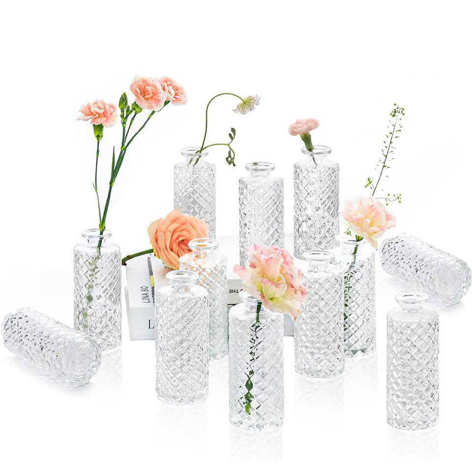 Vasi in Vetro Cilindrici Piccoli con Motivo a Diamante in Rilievo per Centrotavola e Decorazioni Domestiche