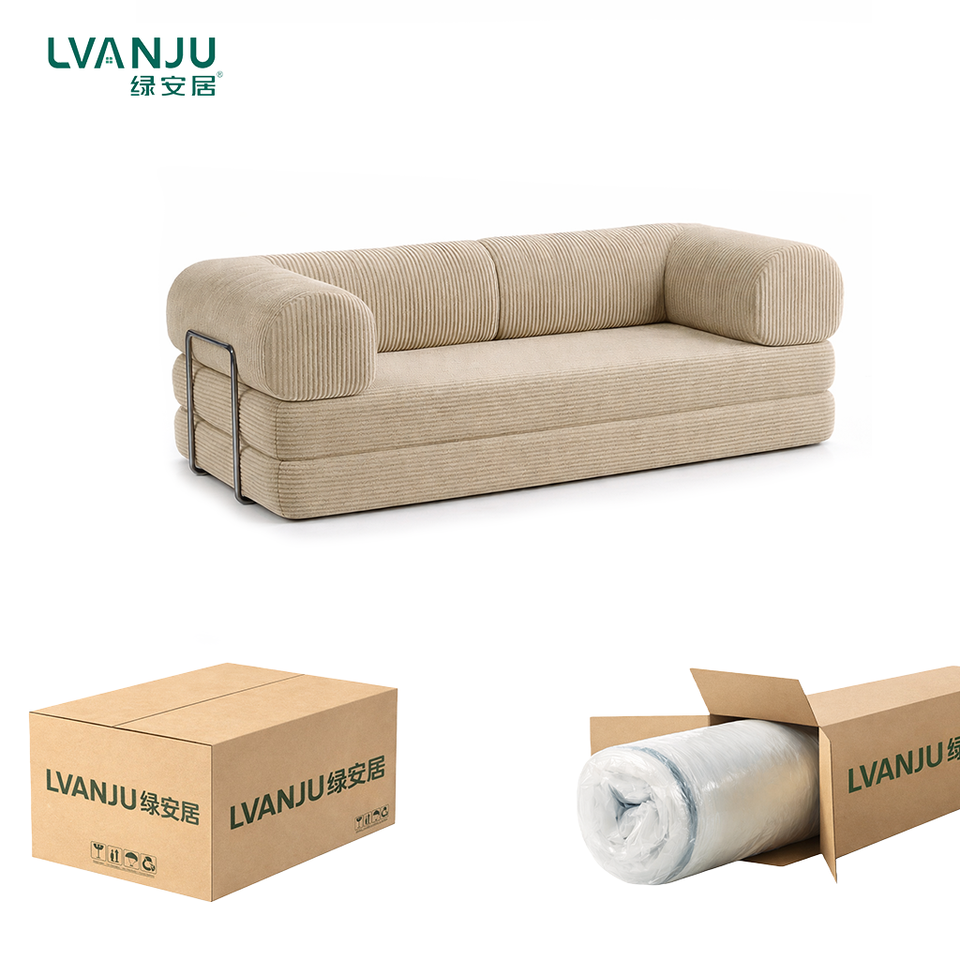 Divano all'ingrosso compresso in scatola, senza telaio, in schiuma ad alta densità, divano in velluto a coste per soggiorno