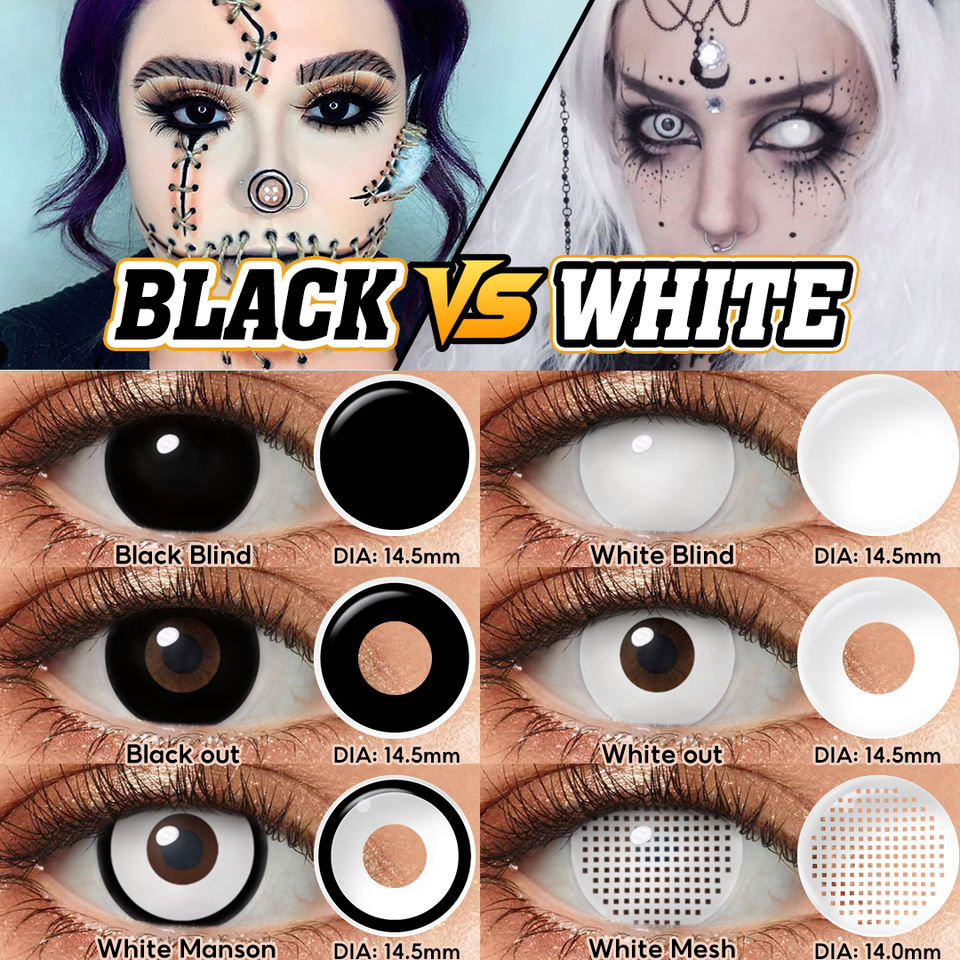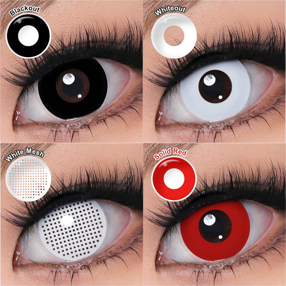 Lenti a Contatto Morbide Nere Halloween all'Ingrosso, Lenti a Contatto Cosmetiche Spaventose Bianche Glost, Lenti a Contatto Colorate Effetto Occhi di Gatto per Cosplay
