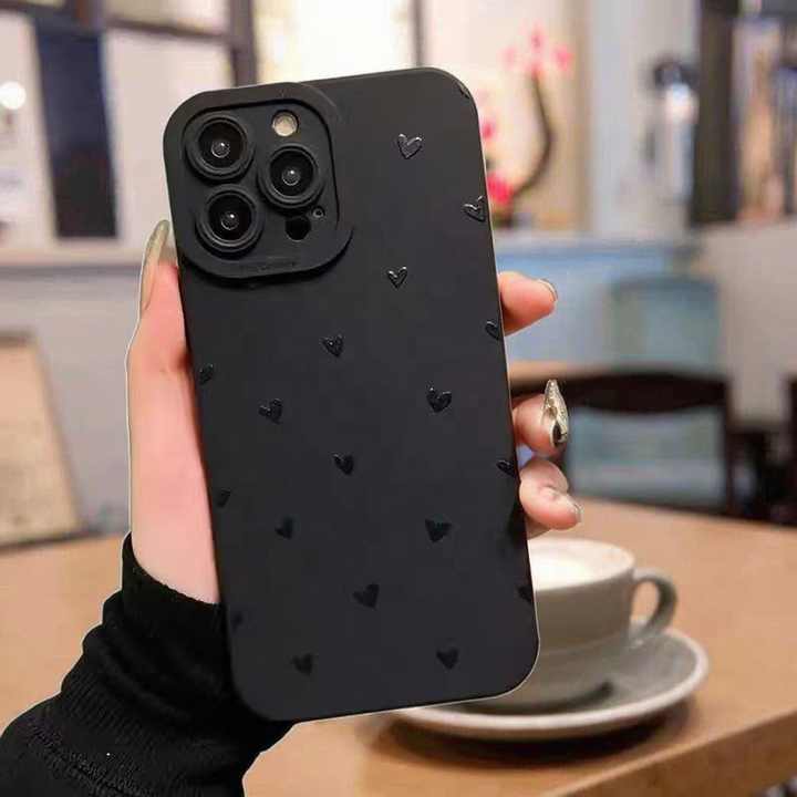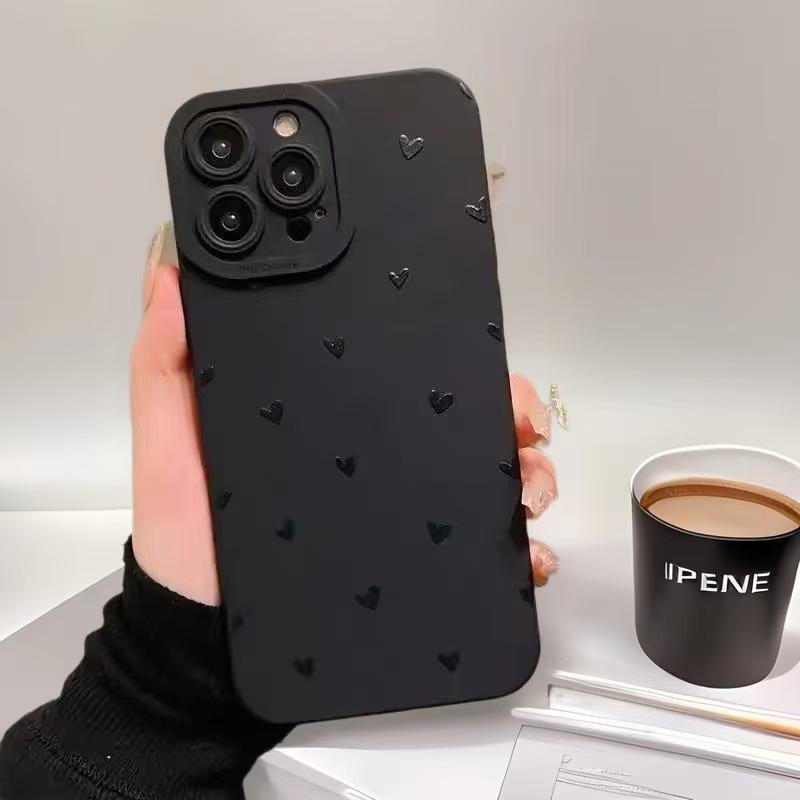 Custodia per telefono con cuore nero opaco morbido all'ingrosso per iPhone 14 13 11 15 Pro Max 12 Mini SR 7 Plus Se 2022 Cover morbida opaca 13pro-Soft