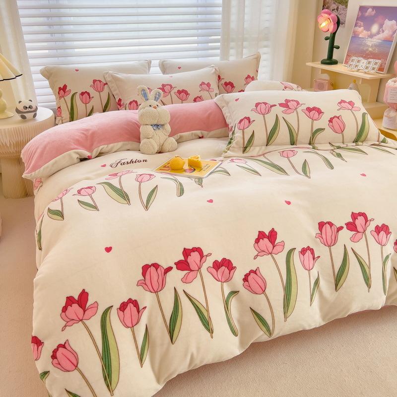 Wholesale Soft Milk Velvet Duvet Cover Set Home Warm Winter Thick Single Double Queen King Quilt Cover Set