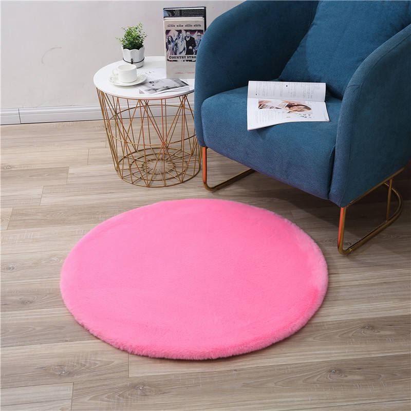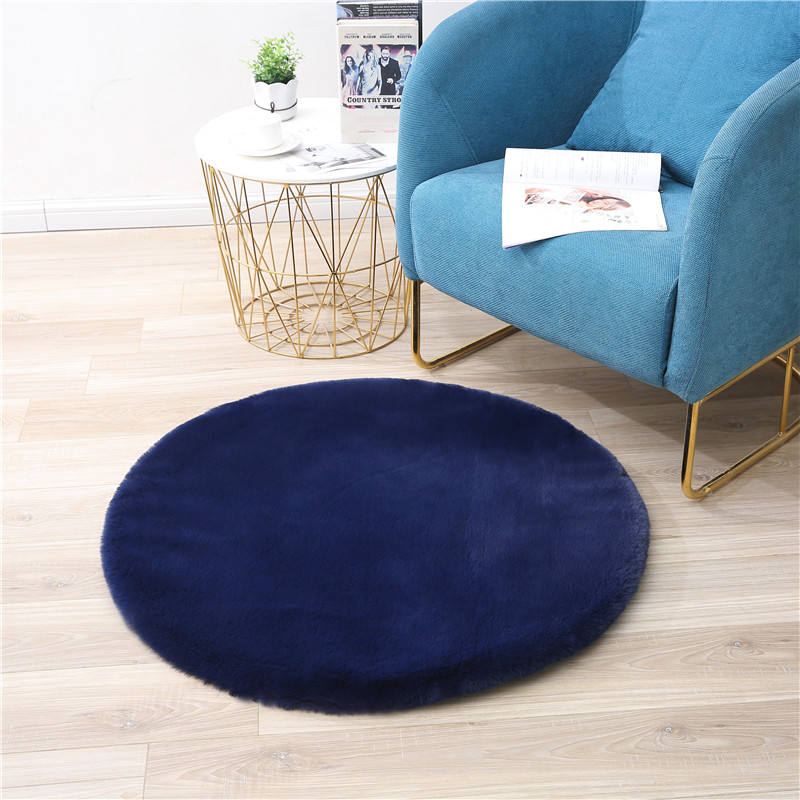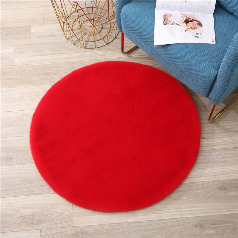 Tappeto in pelliccia di coniglio solido all'ingrosso tappeto rotondo in pelle di pecora Super morbida tappeto bianco peloso in pelliccia sintetica di coniglio in pelle scamosciata tappeto per camera da letto