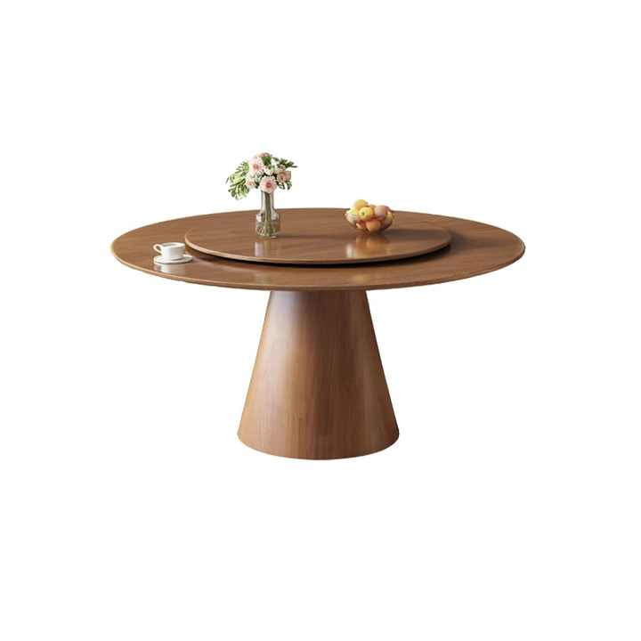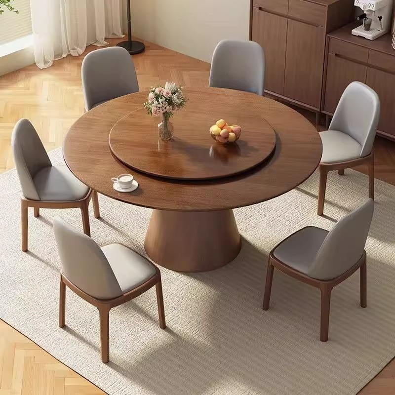 Tavolo da Pranzo Rotondo in Legno Massello con Lazy Susan e Base a Piedistallo Resistente per Sale VIP di Ristoranti Cinesi di Alta Gamma.