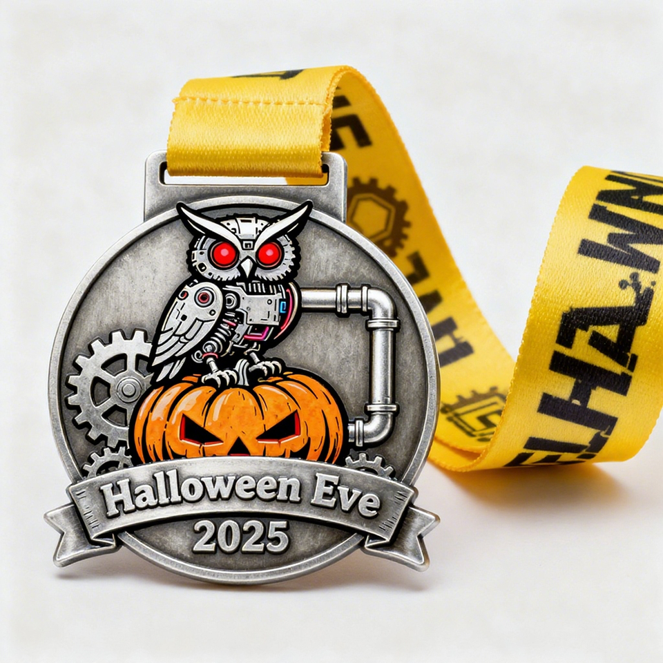 Wholesale Souvenir Antique Silver Brass Plated Die-Cast UV Printed Halloween Medal Personalized Engrave Pumpkin Owl Pattern