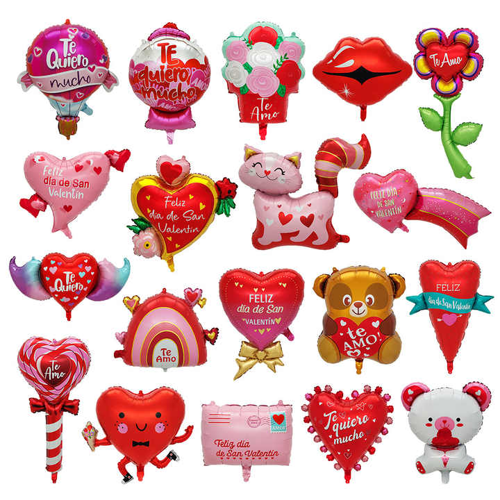 Wholesale Spanish Happy Valentine's Day English Wedding Aluminum Helium Heart Flower Bear Balloon for Party Decoration
