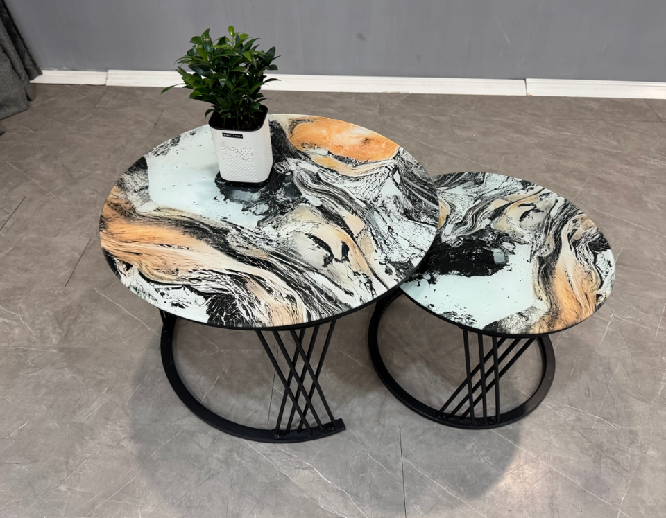 Tavolino da Caffè con Struttura in Metallo e Piano in Vetro, Design Speciale, per Arredamento Casa e Hotel
