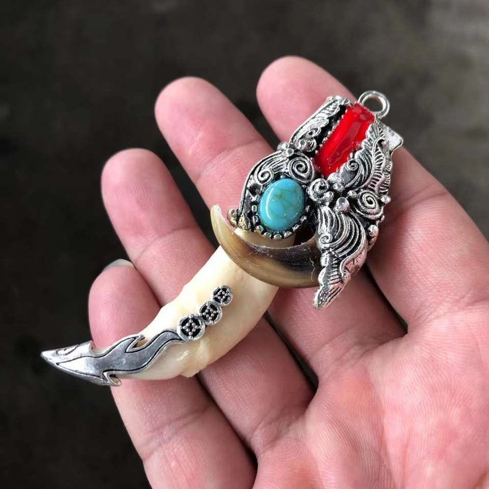 Collana con ciondolo a dente di cane sportivo intarsiato in argento tibetano e catena in bambù, regalo all'ingrosso per una generazione di amanti degli animali domestici