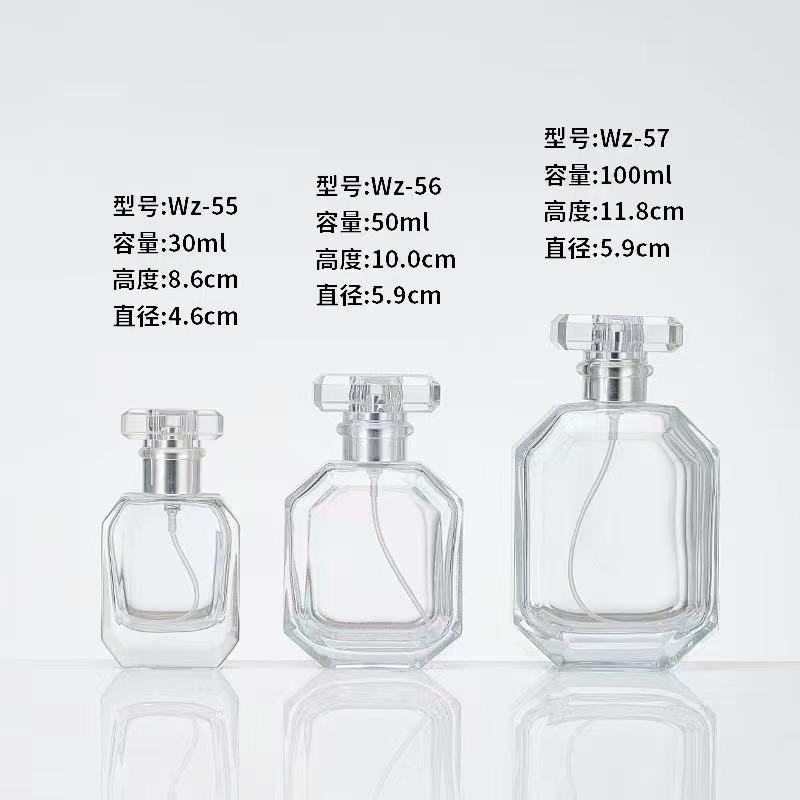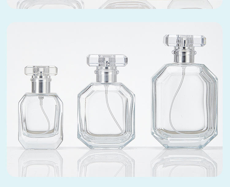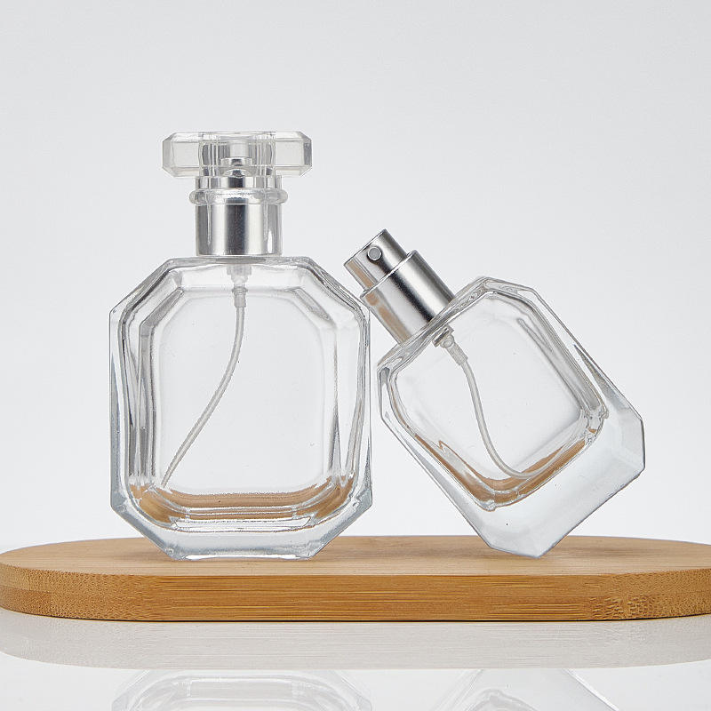 Bottiglia di profumo di vetro Spot all'ingrosso 100ml 50ml baionetta bottiglia di acqua Spray trasparente materiale di cristallo bottiglia poligono