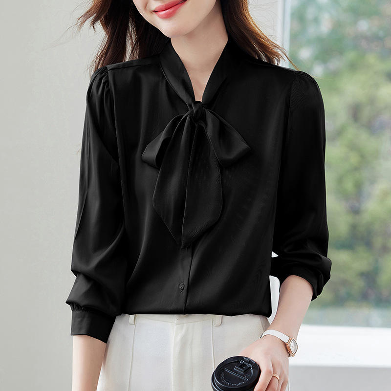 Vendita all'ingrosso di scorta 2025 primavera nuova versione coreana Versatile con collo alto a maniche lunghe camicia di raso da donna
