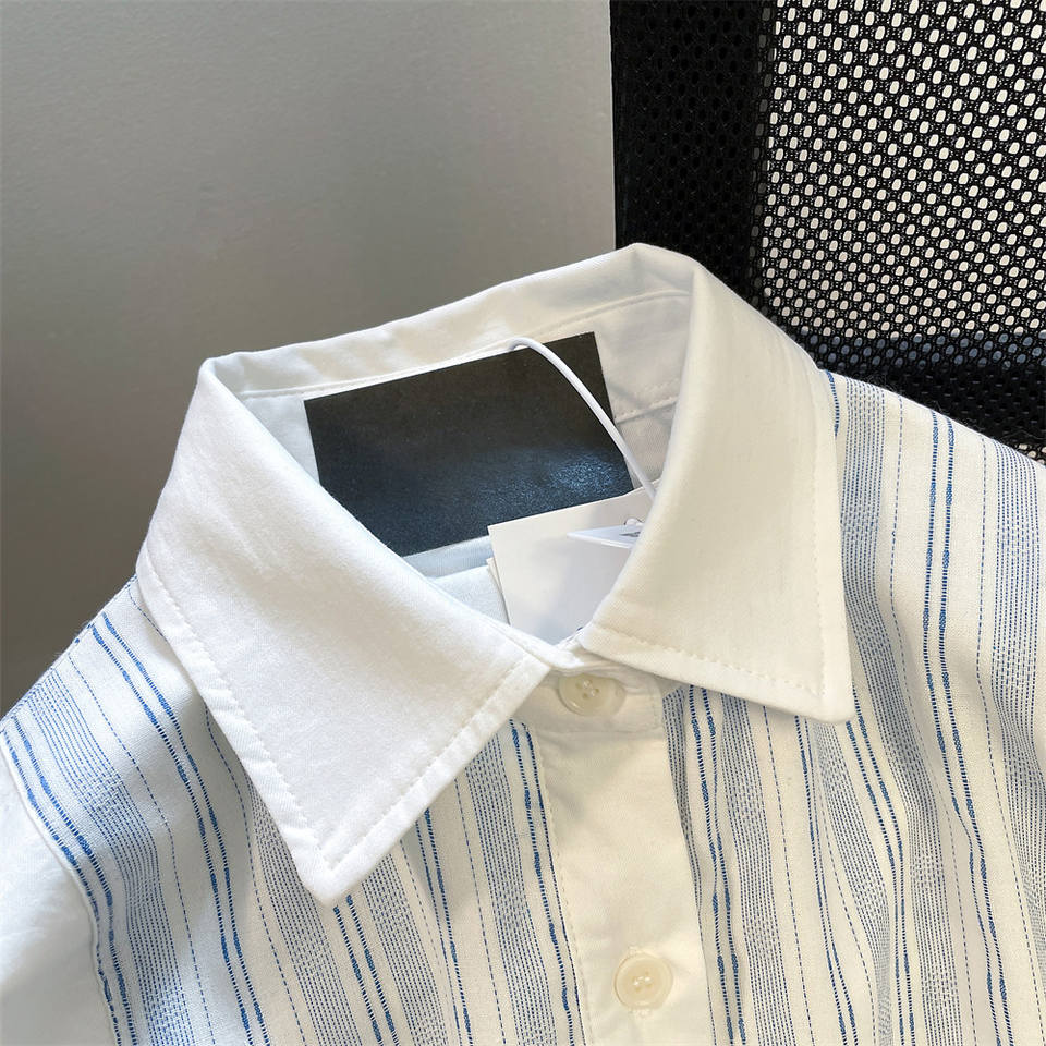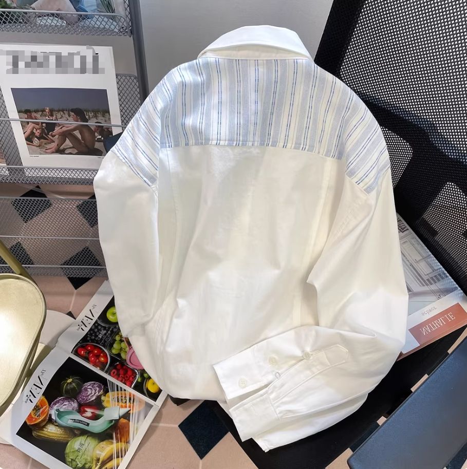 Camicia da Donna a Maniche Lunghe con Motivo a Righe Blu e Bianche, Stile Retrò Casual, Elegante e di Tendenza, Nuova Collezione Primavera 2026 - Vendita all'Ingrosso