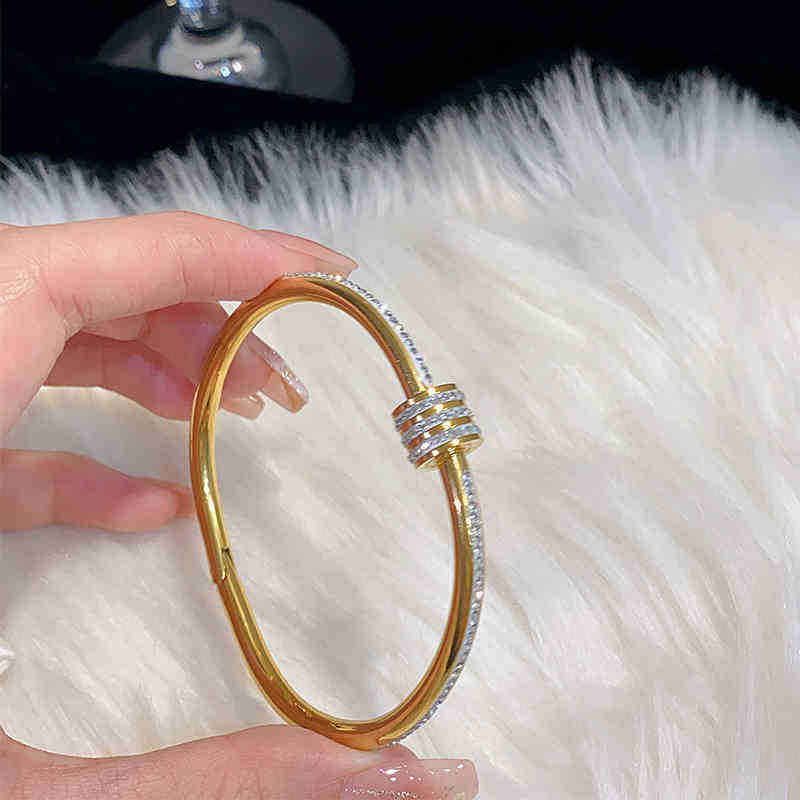 Wholesale Stainless Steel Bangles 18k Gold Plated Titanium Steel Shell Diamond Clasp Bracelets Women's Fashion Jewelry