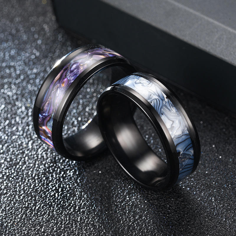 Vendita all'ingrosso in acciaio inox metallo Rock Band da uomo anelli Bohemia gioielli in metallo nero arcobaleno guscio di nozze anello da dito coppia