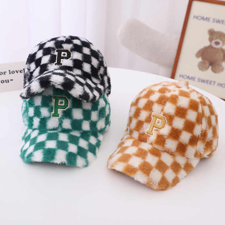 Stock all'ingrosso americano a scacchiera in stile pelliccia sintetica Rex coniglio in velluto poliestere cappellini da Baseball per bambini