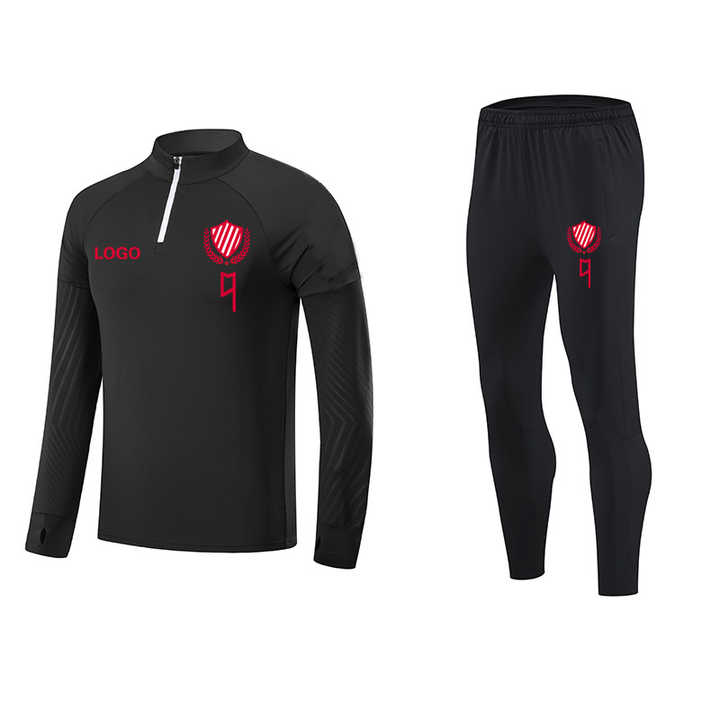 Tuta da Calcio Invernale Personalizzata con Mezza Zip in Tinta Unita Nera, Giacca da Calcio, Felpa Sportiva