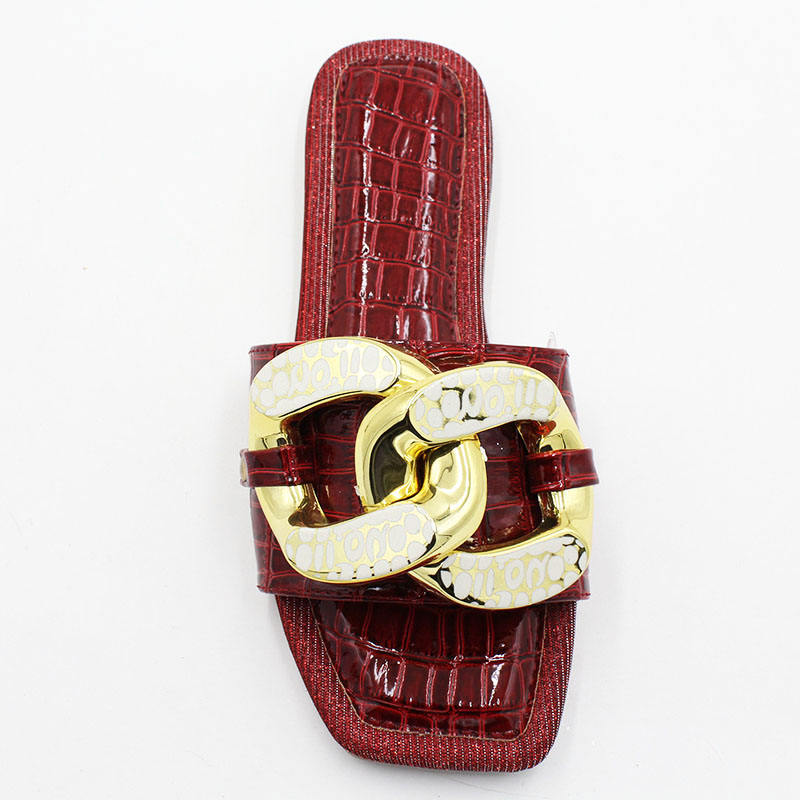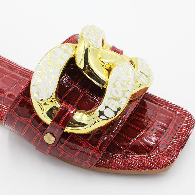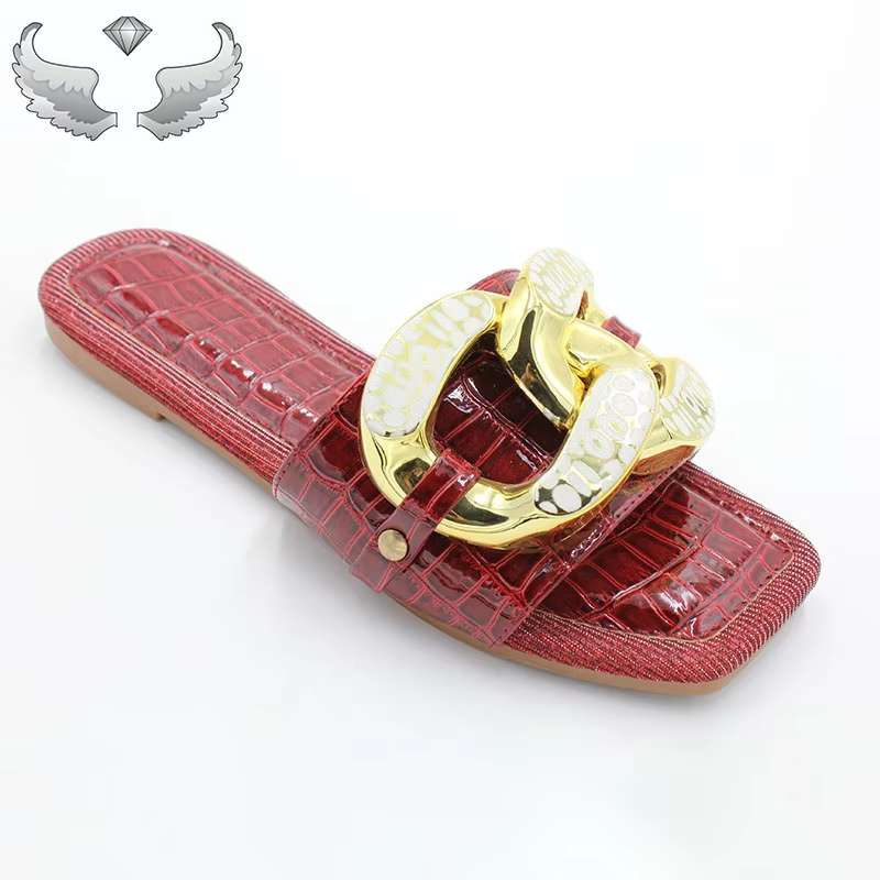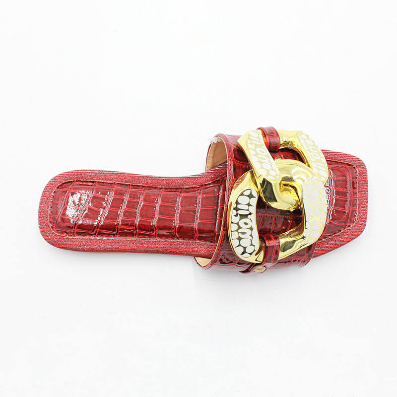 Wholesale Summer Beach Casual Women Slippers Fashion Crocodile Grain Slippers With Thick Chain Decorated