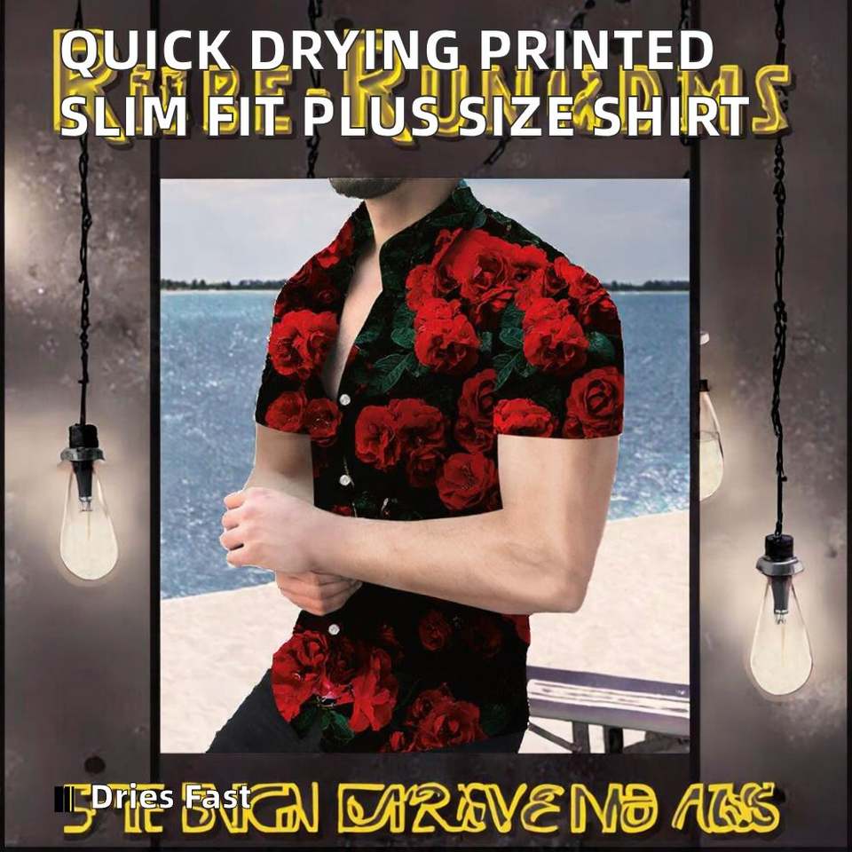 Camicia Casual da Uomo Estiva Traspirante Stampata ad Asciugatura Rapida a Maniche Corte Slim Fit Taglie Forti con Colletto Rovesciato