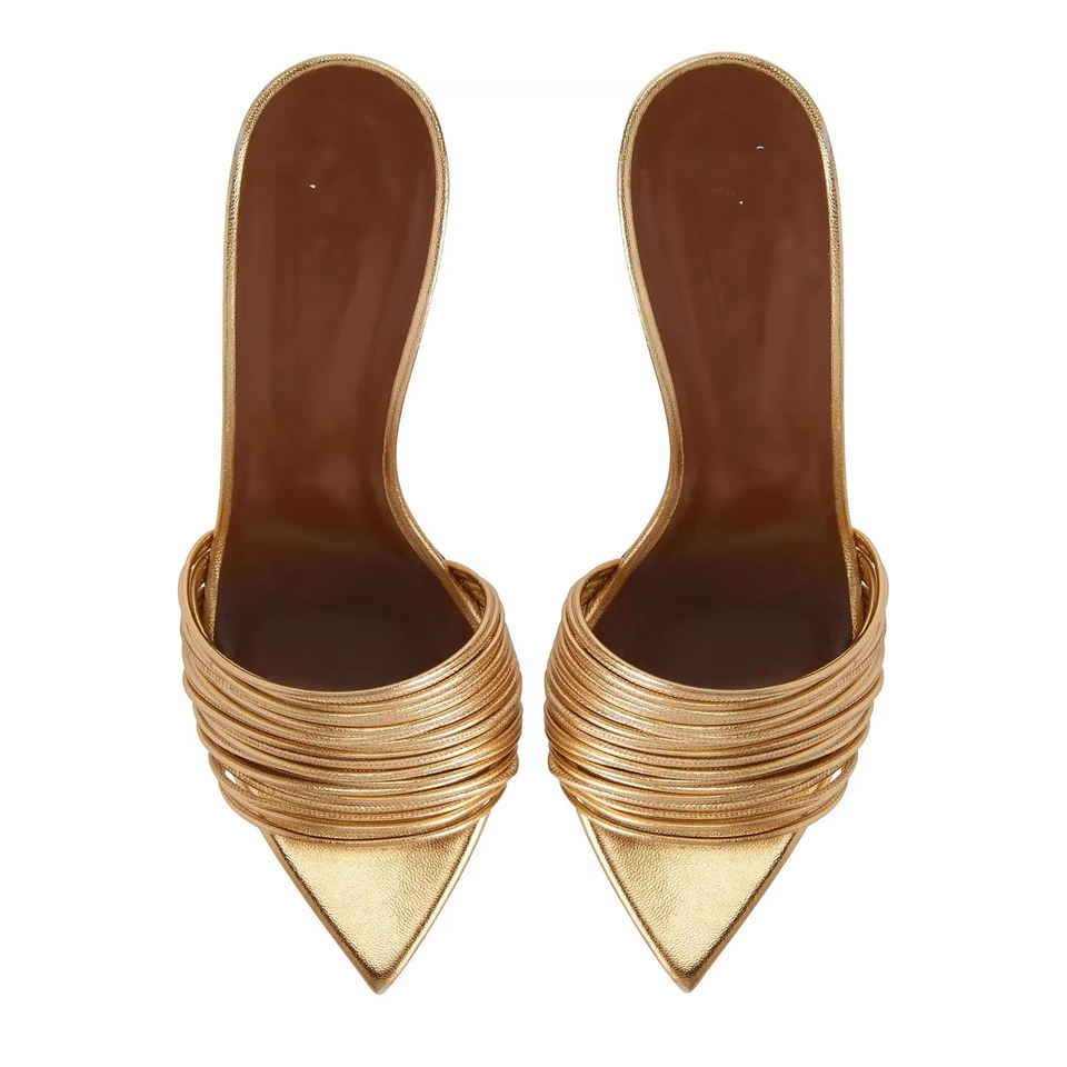 All'ingrosso estate Color oro punta sottile tacco alto pantofole sandali per le donne