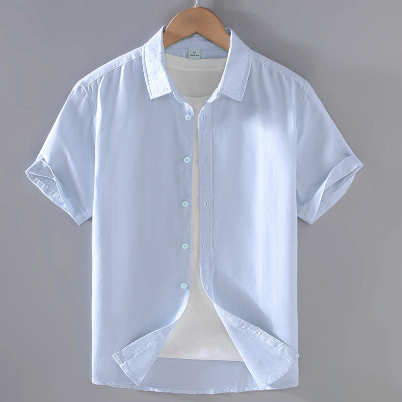 Wholesale Summer Men's Pocket Short Sleeved Linen Shirt Men's Casual Cotton Linen Thin Half Sleeved Shirt Cardigan Top Jacket