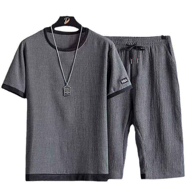 Completo Sportivo Casual da Uomo Taglie Forti Estivo Stile Coreano all'Ingrosso con Maglietta a Maniche Corte e Pantaloncini
