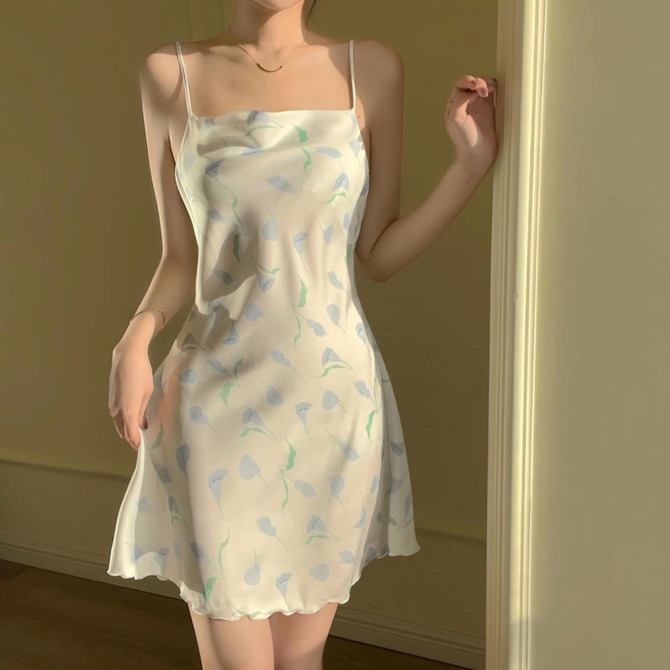 Wholesale Summer Suspender for Slip Nightdress for Women Plus Size Polka Dot Printed Sexy Satin Lounge Sleepwear Valentine's Day