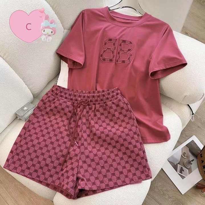 Wholesale Summer Women's Knitted Pullovers Luxurious T-shirts Shorts Women's Casual Clothing Sets