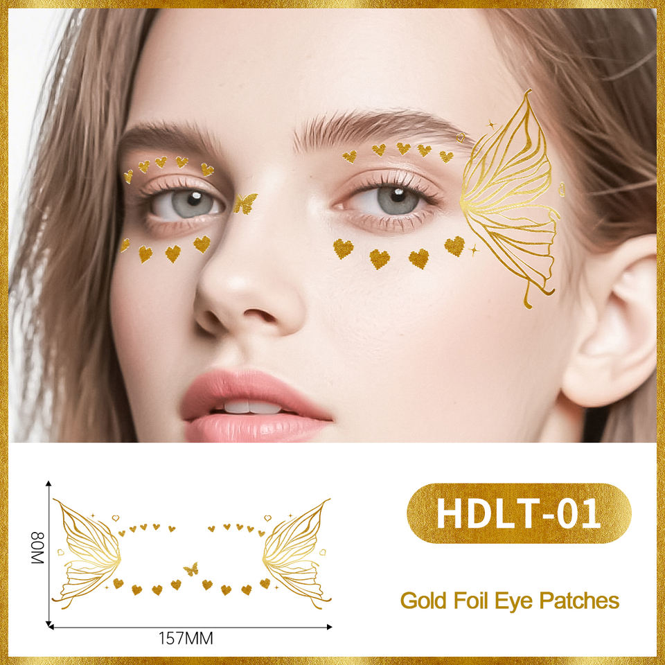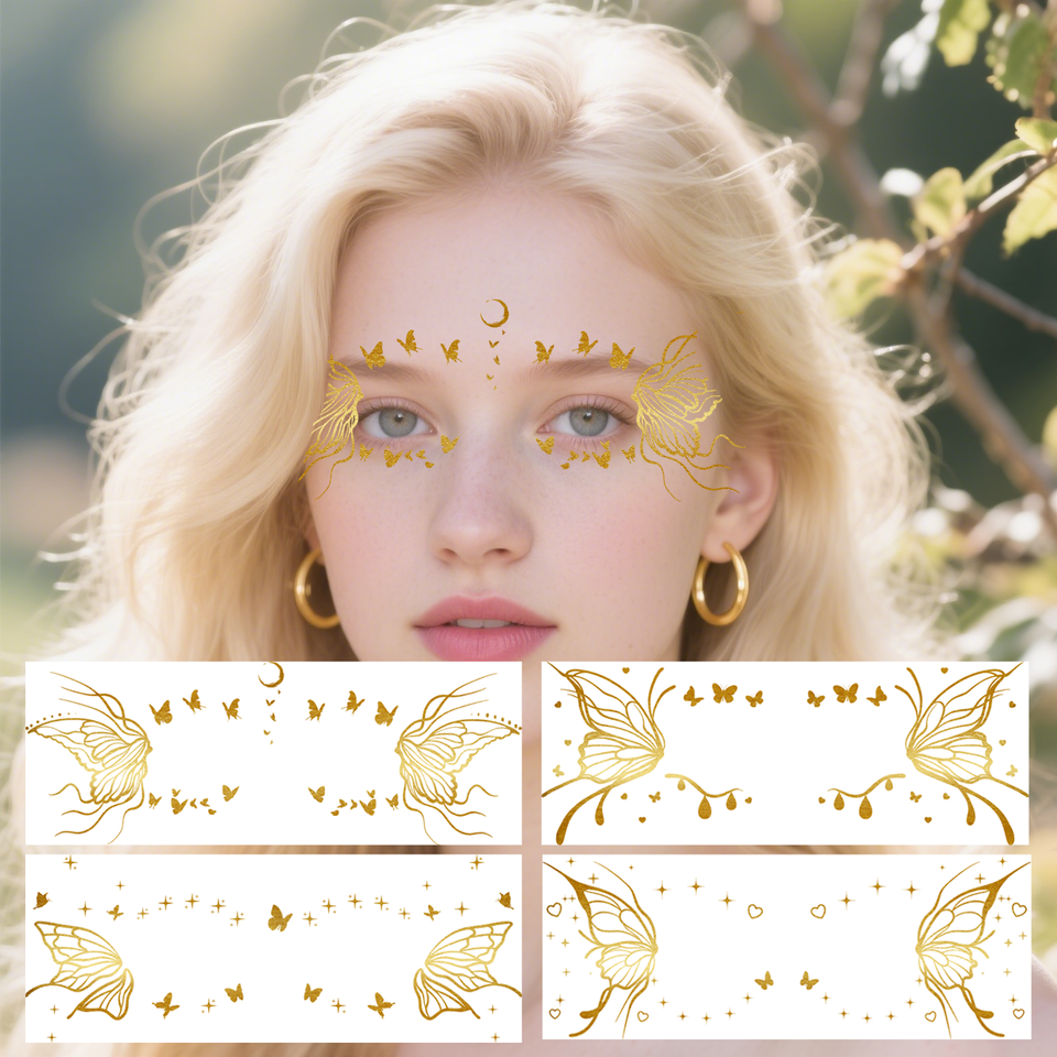 Adesivi Temporanei Dorati a Farfalla per Occhi, Ipoallergenici, Gemme in Lamina per il Viso, Disegni Personalizzabili per Tatuaggi all'Ingrosso per Feste