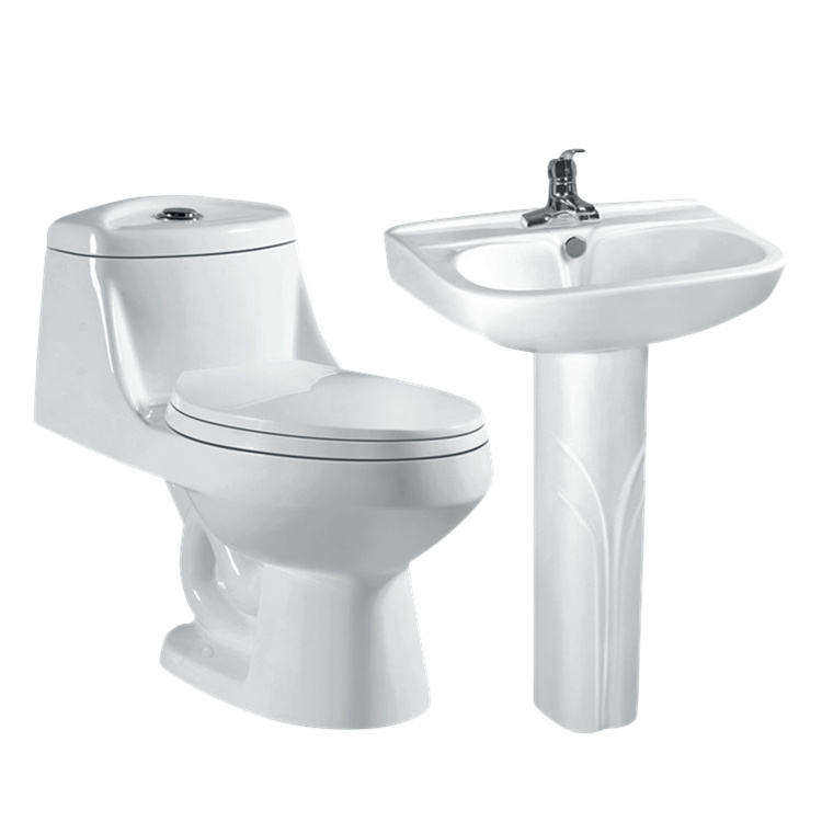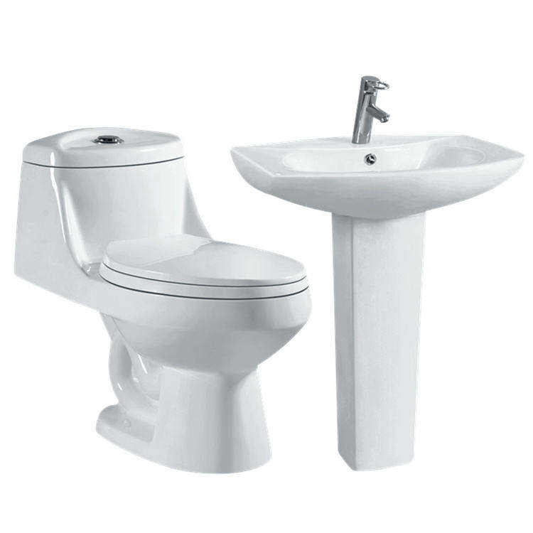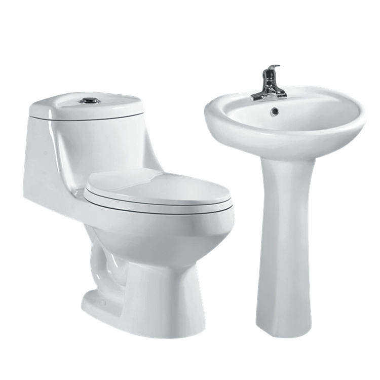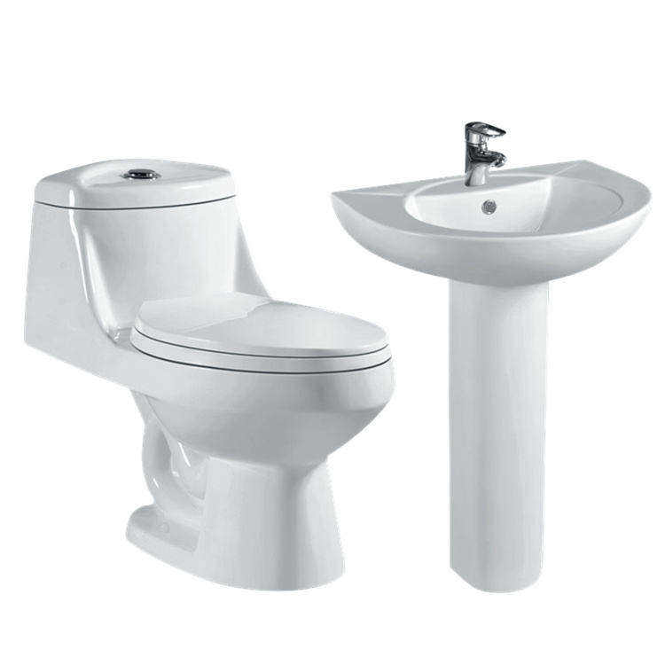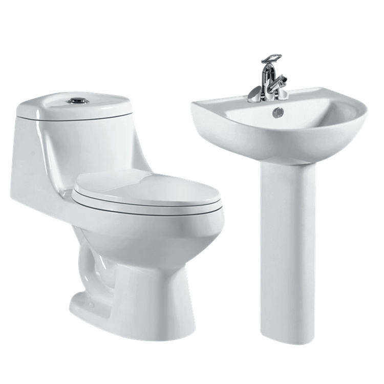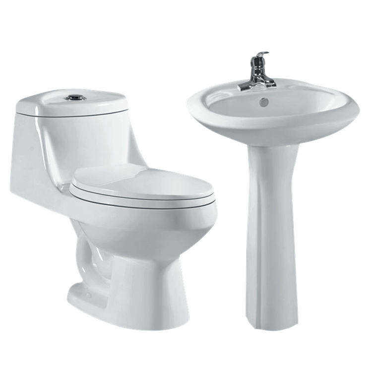 Set WC e Lavabo in Ceramica Monoblocco con Sifone a S per Bagno