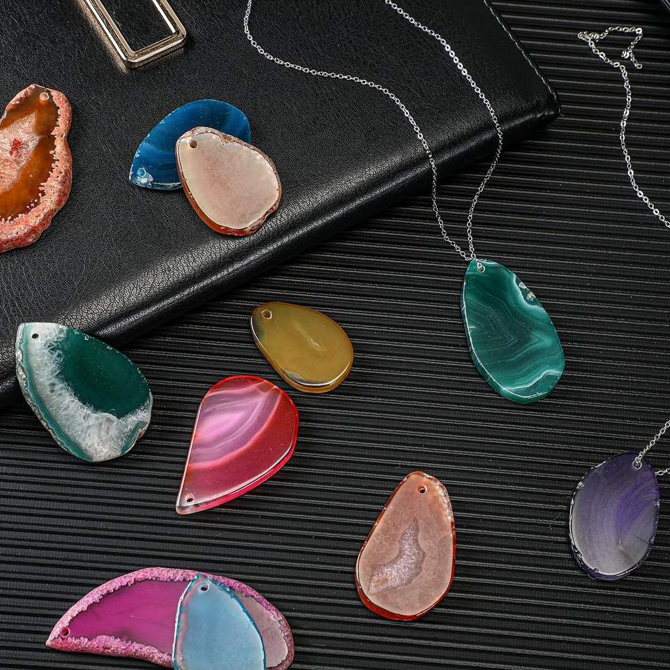 Wholesale Top Drilled Natural Agate Slice Stone Pendant Polished Geode Slice for Jewelry Wind Chims Making and Name Cards