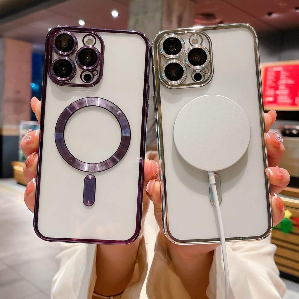 Wholesale Transparent TPU Cover Electroplated Magnetic Wireless Charge Phone Case for iPhone 15 Pro Max 14 Pro 13 12 11 XS MAX X