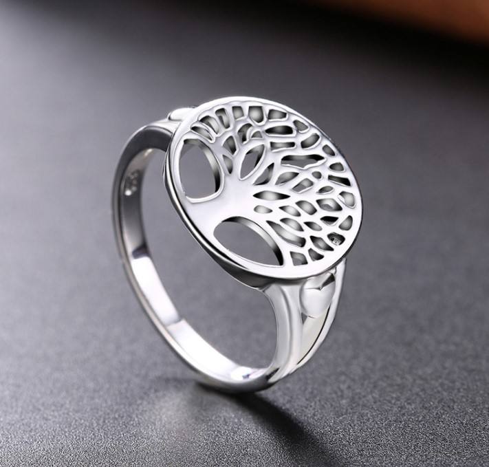 Wholesale Trendy 925 Silver Tree of Life Ring Hollow out Alloy Jewelry for Men Women for Engagement Gift Party Anniversary