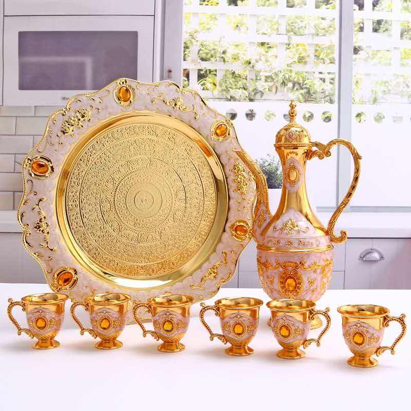 Wholesale Turkish Arab Coffee Tea Pot Teapot 6 Cups Set Cast Iron Metal for Drinking and Home Decoration Vintage 27.5*17.5cm