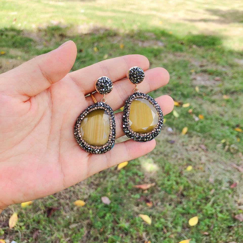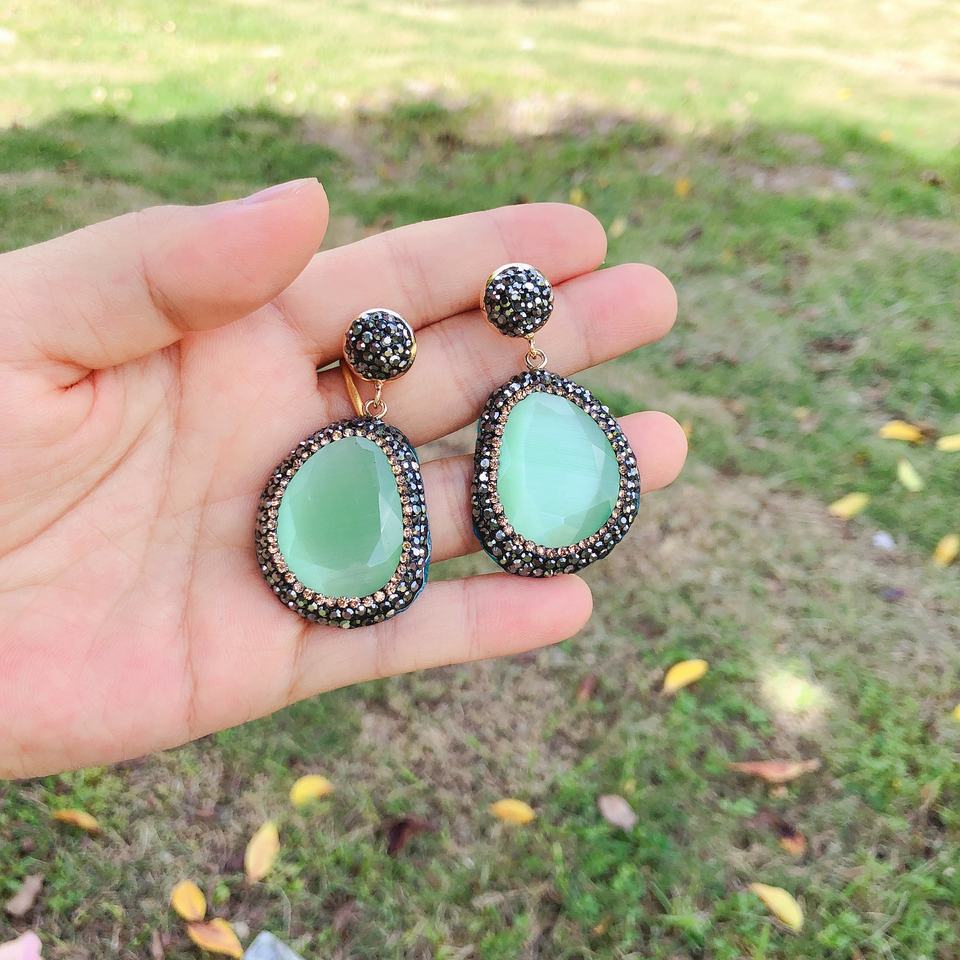 Commercio all'ingrosso turco design pave crystal cat eye stone pendant ciondola l'orecchino strass stud fashion jewelry orecchini DZE214