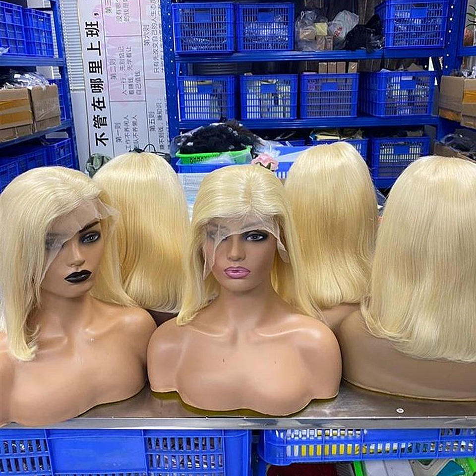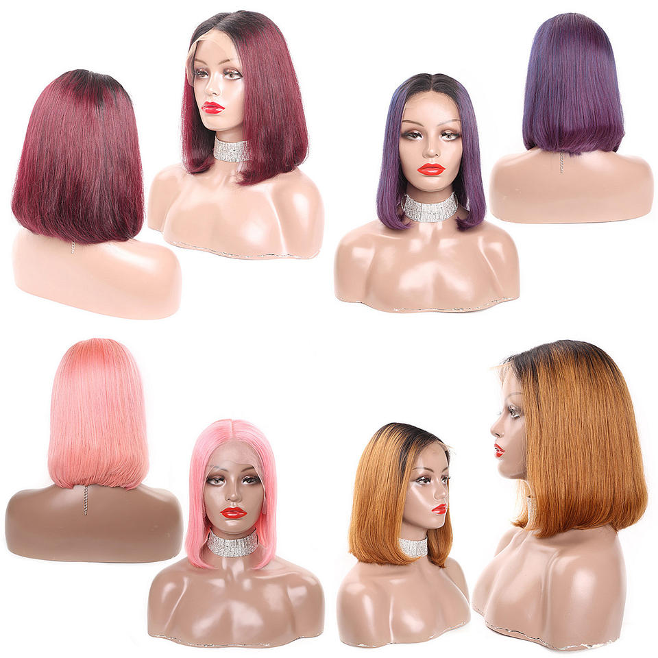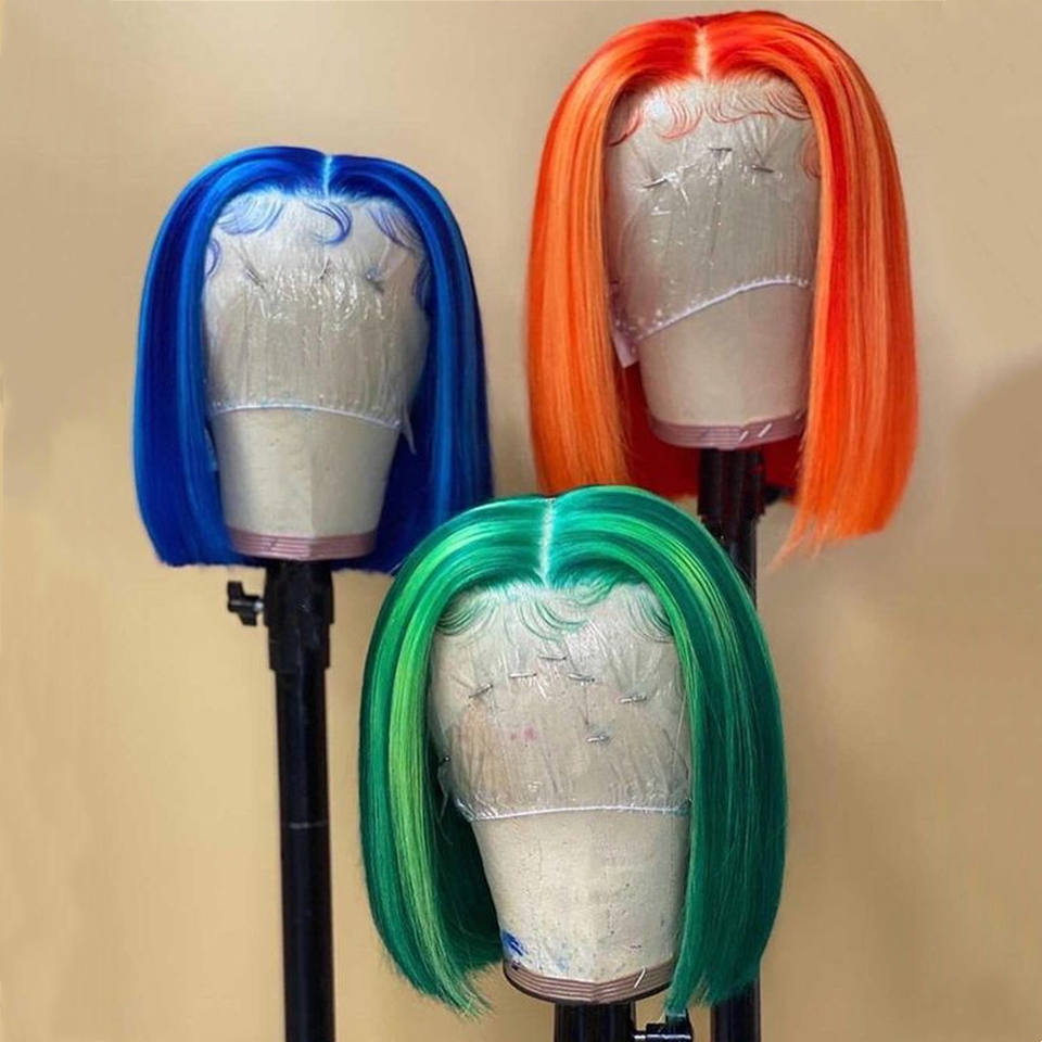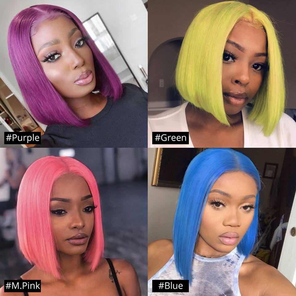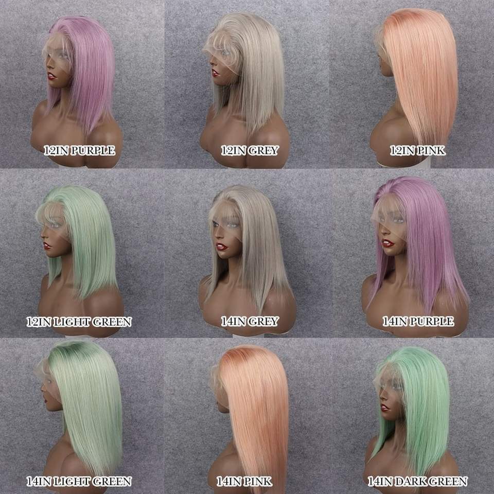 Del Turchese Del commercio all'ingrosso 613 di Colore Biondo Parrucca Brasiliani Del Virgin Dei Capelli Umani di Colore Rosa Arancio Blu Rosso Grigio Colorato Frontal Del Merletto Parrucca Bob