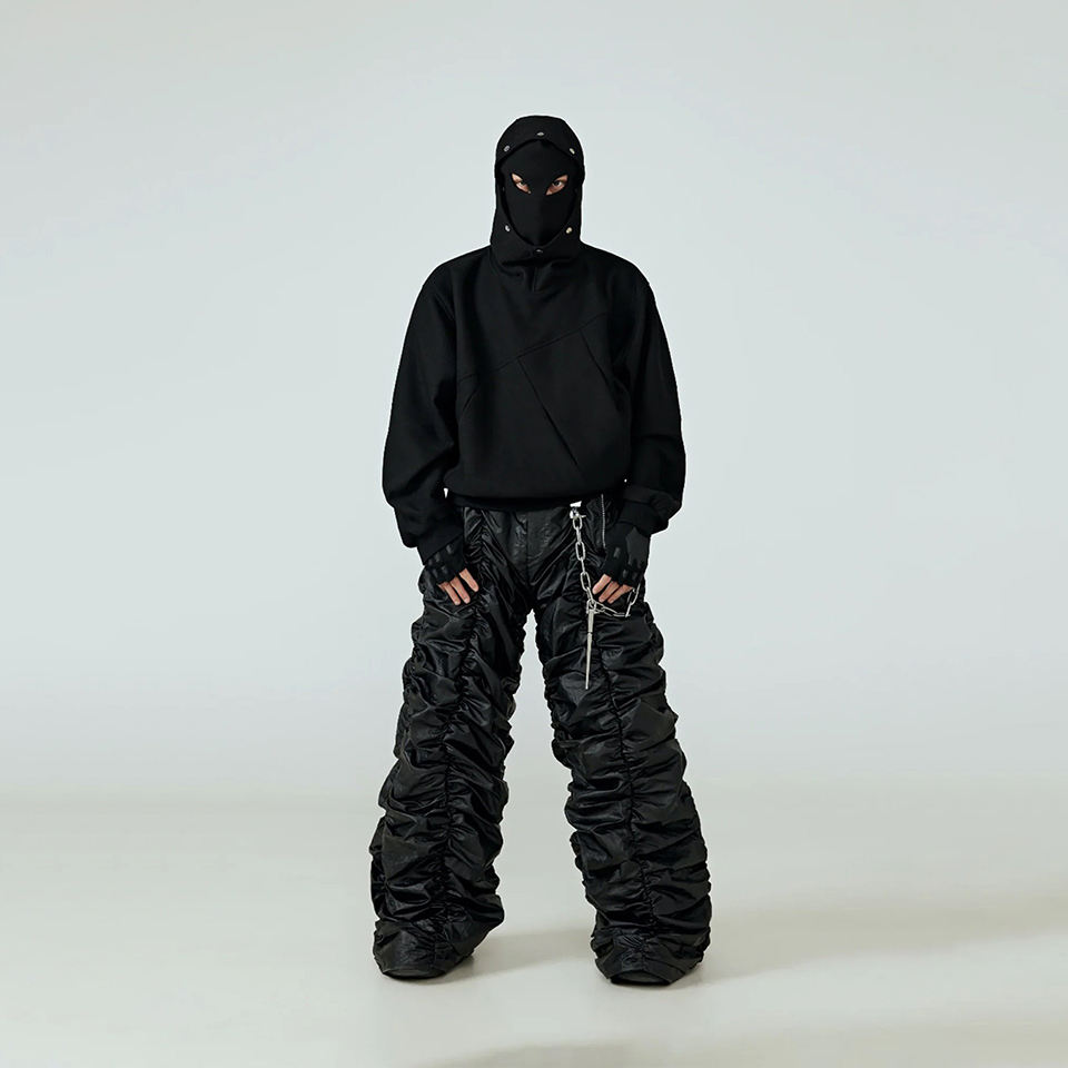 Wholesale Unisex Streetwear Hoodie Double Hood Design Windproof Warm Masked Pullover Oversize Techwear Casual Premium Sweatshirt