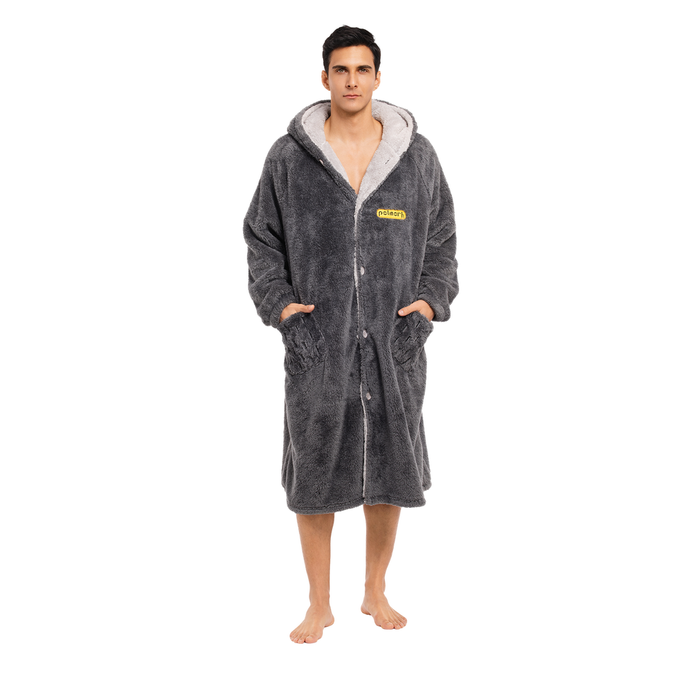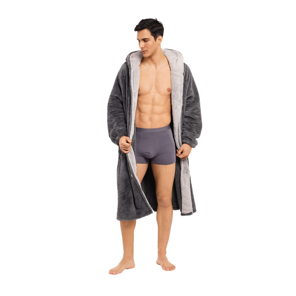 Warm Winter Coral Fleece Sleep Robe with Sherpa Inner Decoration