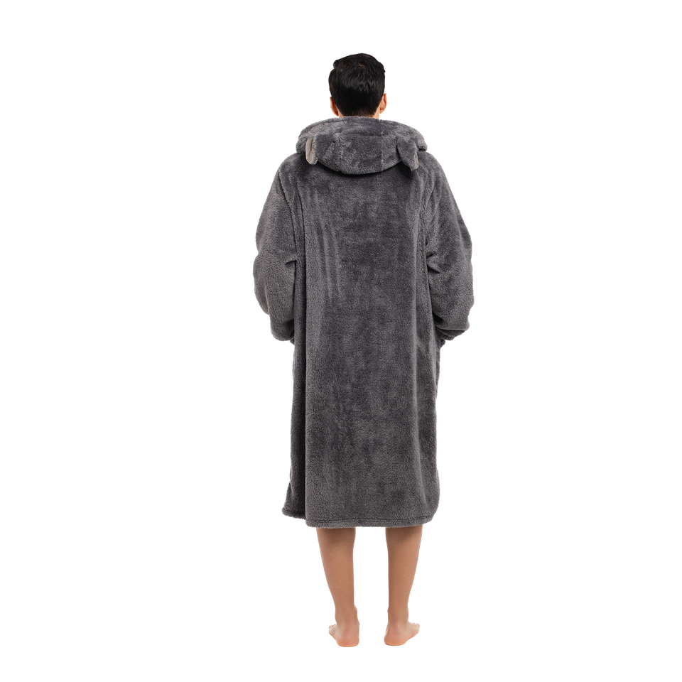 Wholesale Unisex Super Soft Plush Warm Fleece Pajamas for Men With Cartoon Wolf Ears Hat